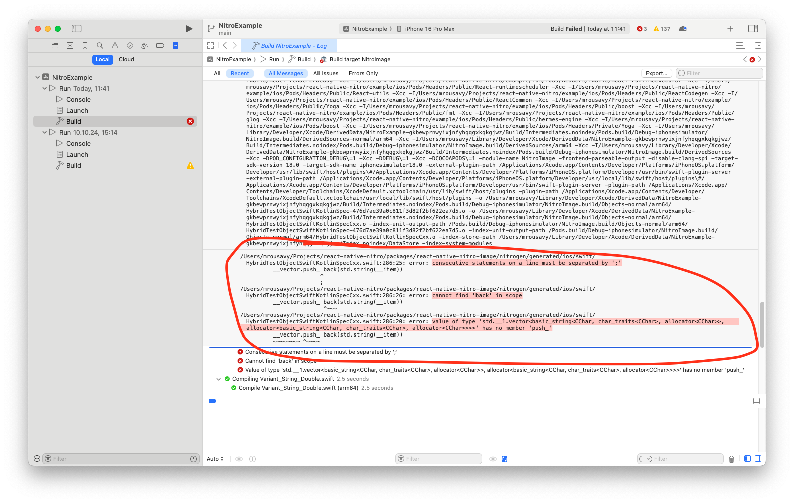 If your app fails to build after installing Nitro or a library powered by Nitro, make sure to post full build logs: